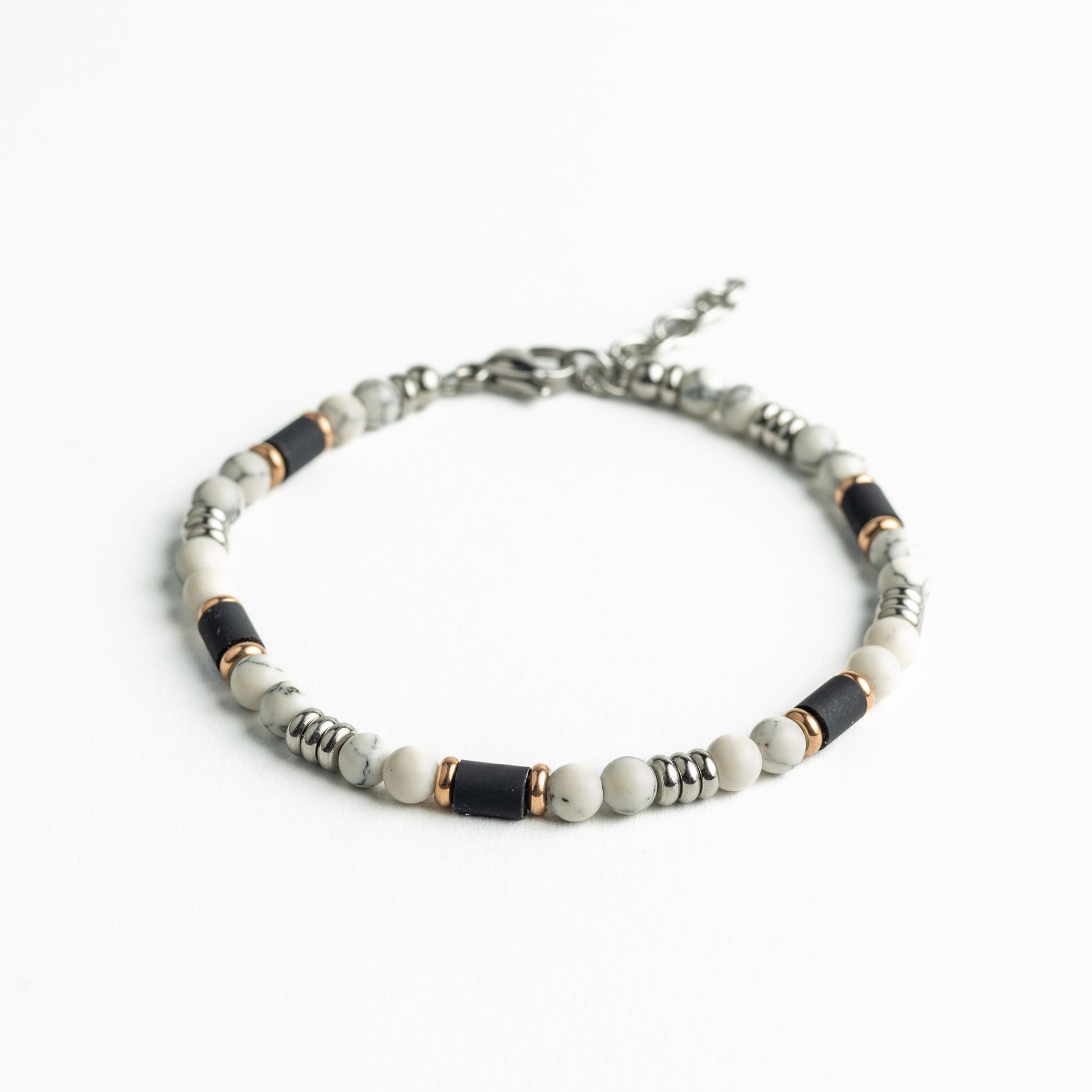 سوار من اليشب الأبيض والعقيق مع سدادات من الفولاذ المقاوم للصدأ